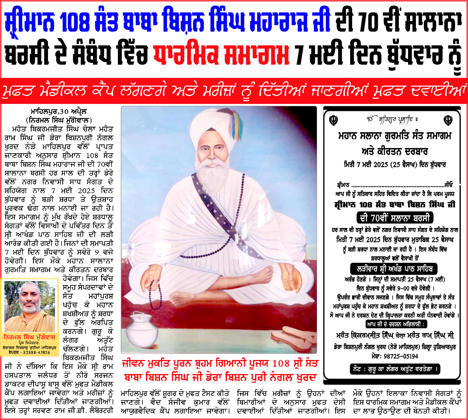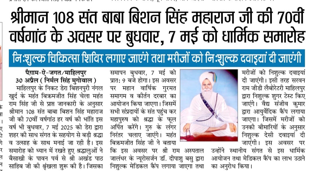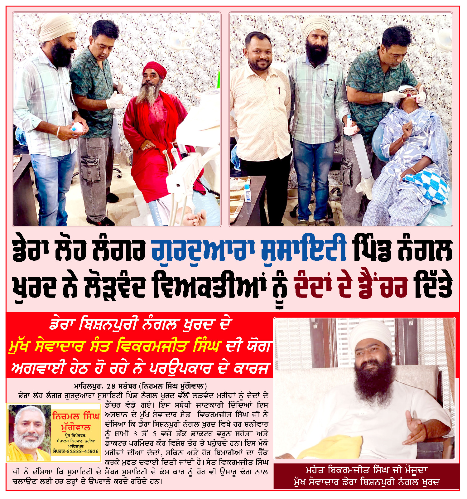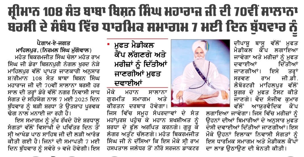 ਡੇਰਾ ਬਿਸ਼ਨਪੁਰੀ ਨੰਗਲ ਖੁਰਦ, ਜ਼ਿਲਾਂ- ਹੁਸ਼ਿਆਰਪੁਰ